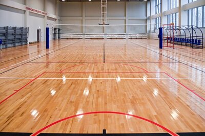 Спортивный объект состоит из двух этажей с подвалом и техническим этажом. Он расположен в непосредственной близости к лесному массиву. ФОК оснастили панорамным остеклением.