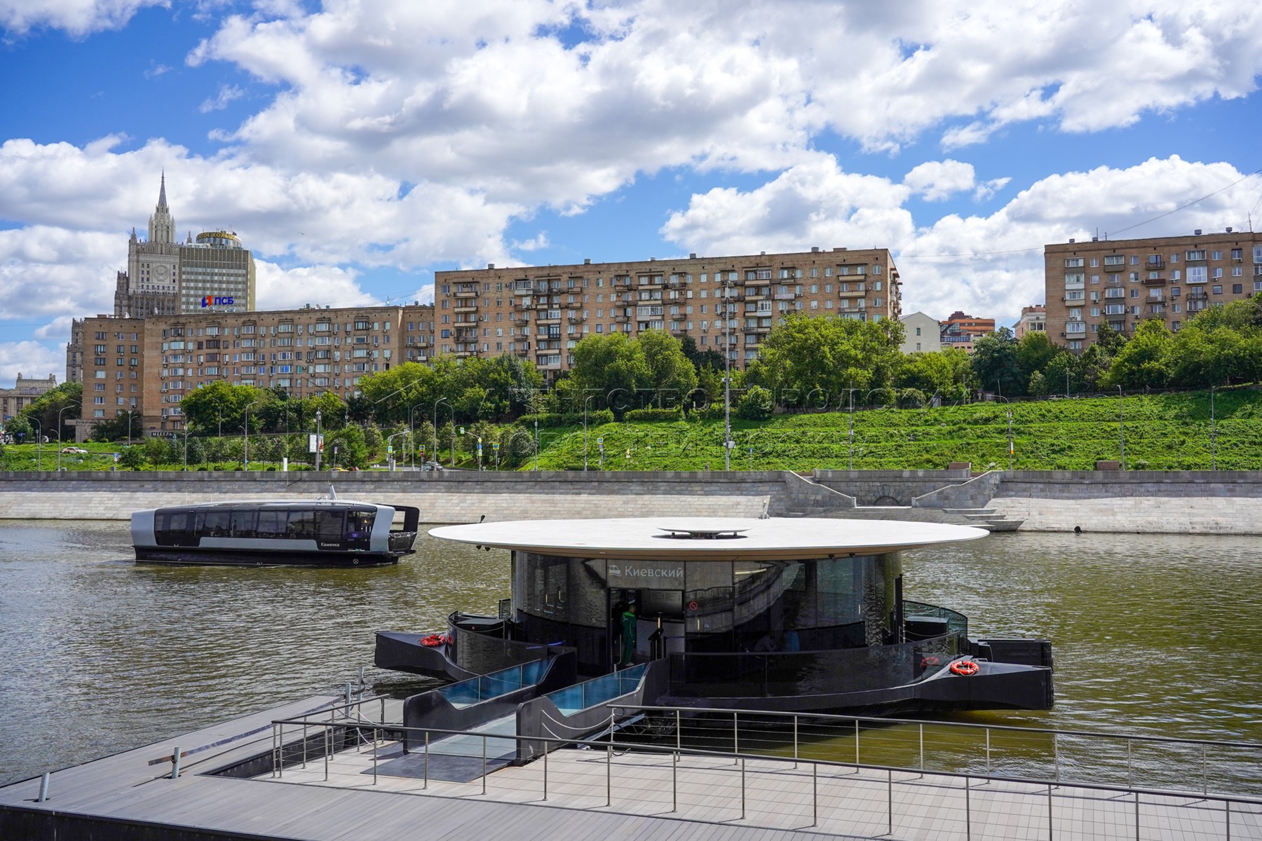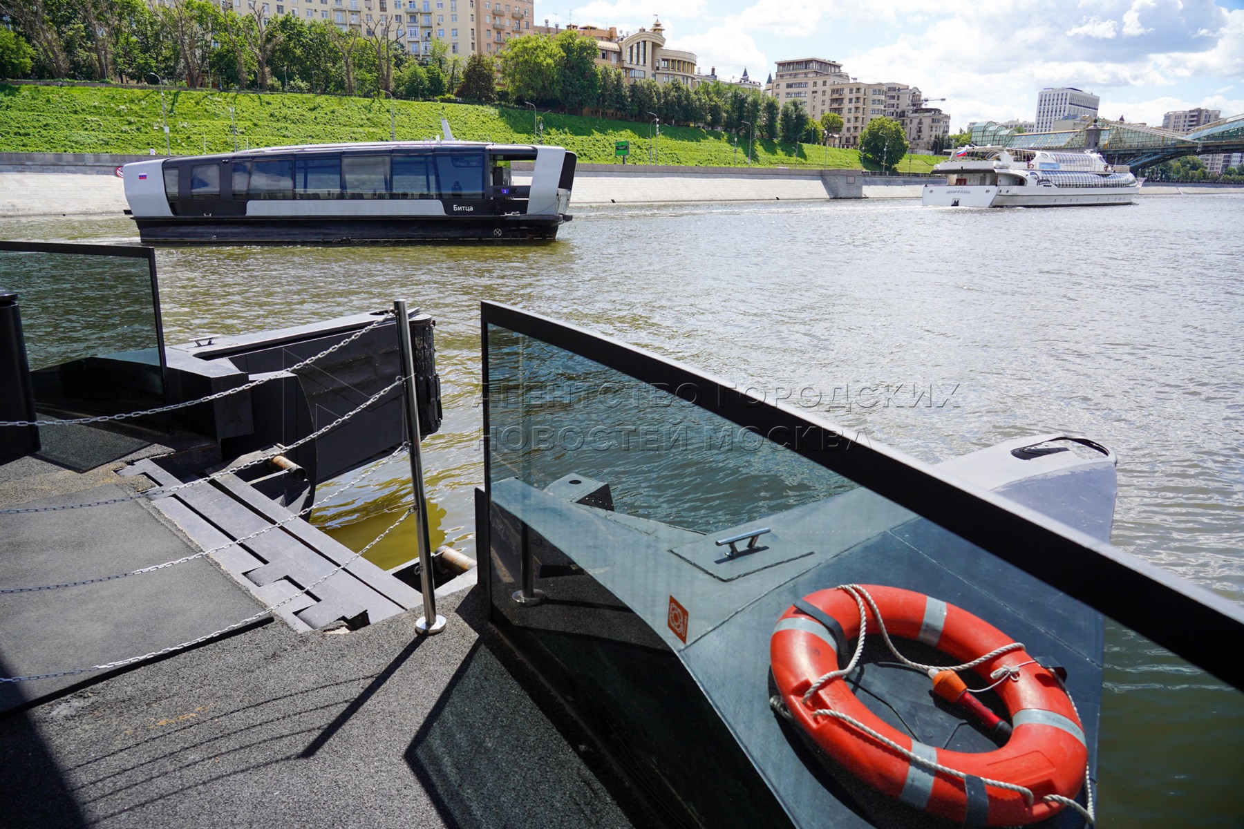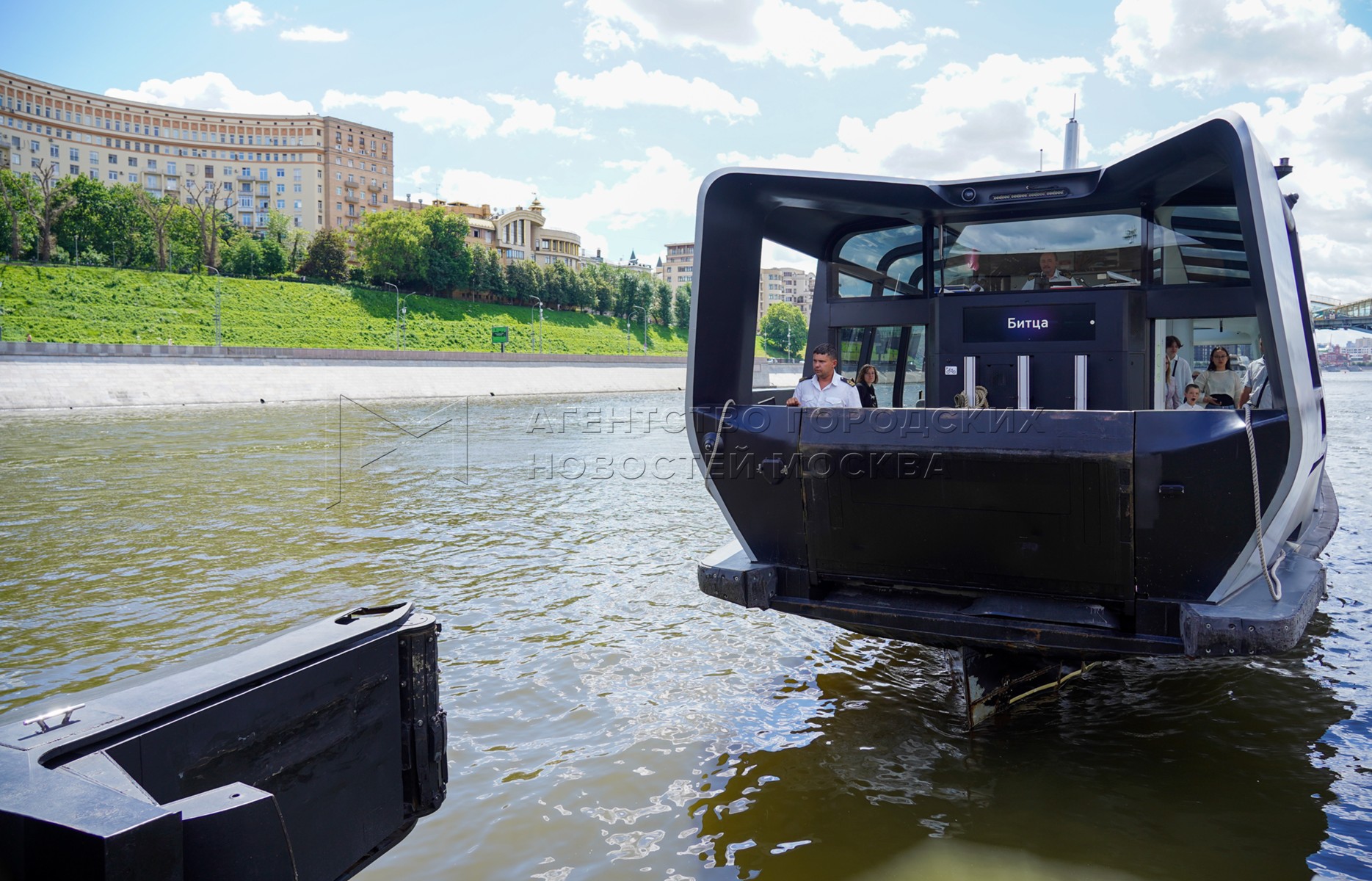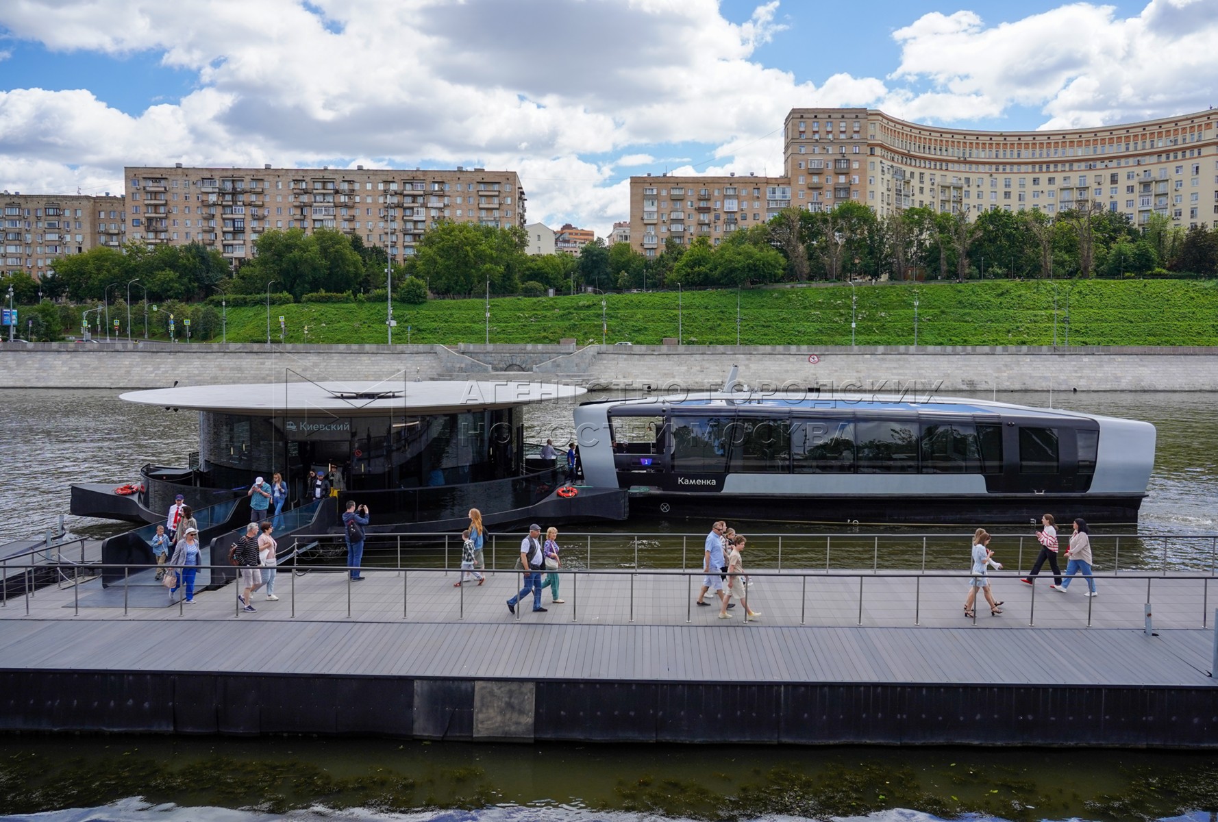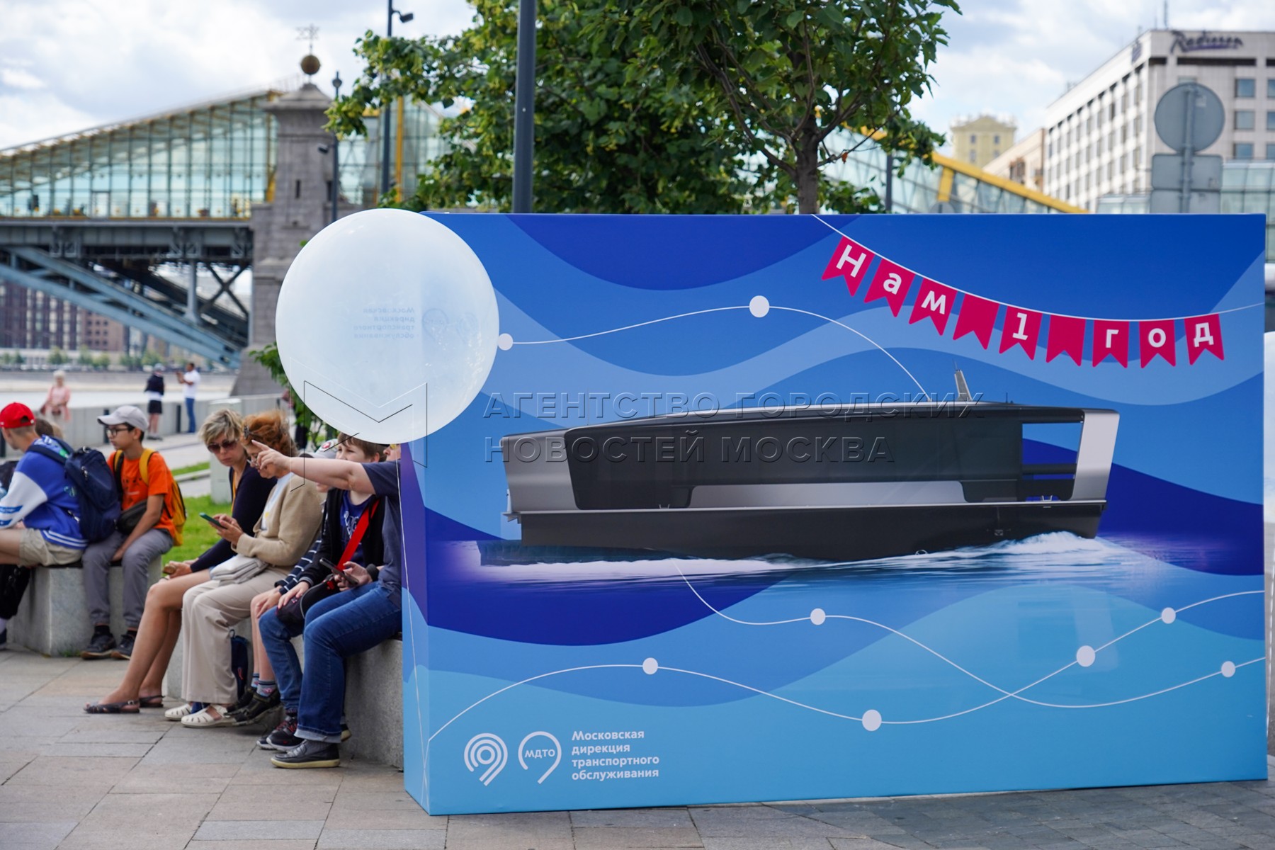 - Описание: Мероприятия в честь первой годовщины запуска в столице регулярного речного электротранспорта у плавучих причалов на Москве-реке.