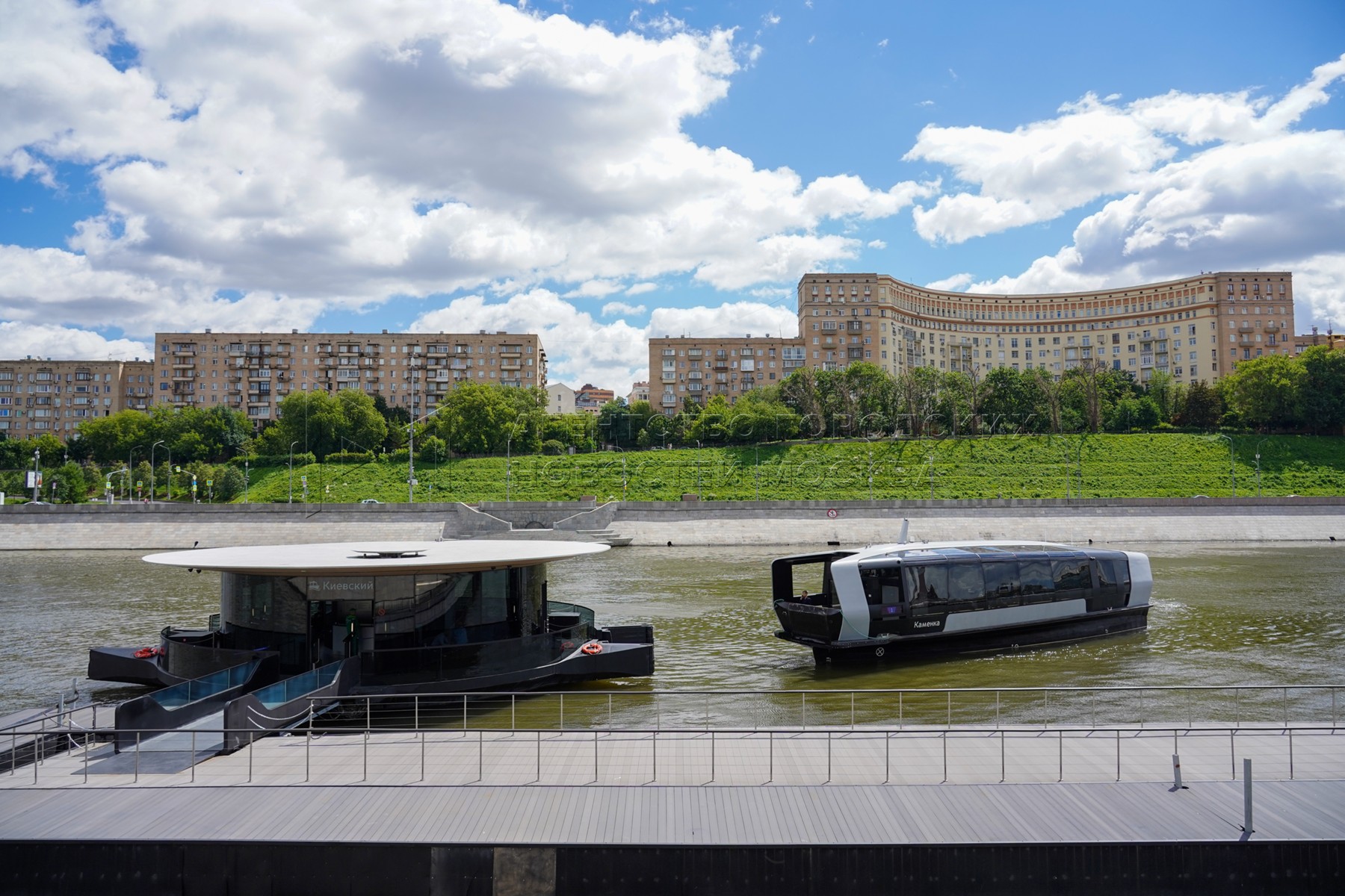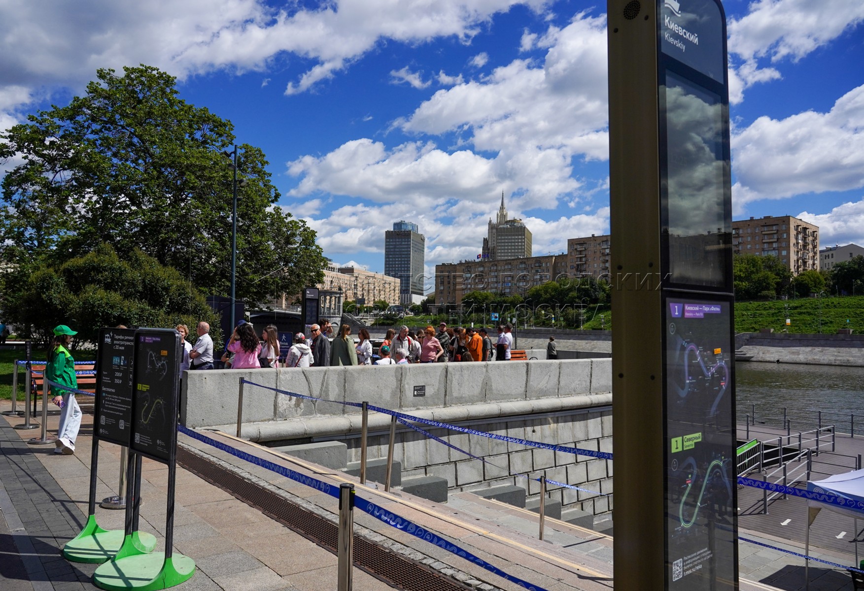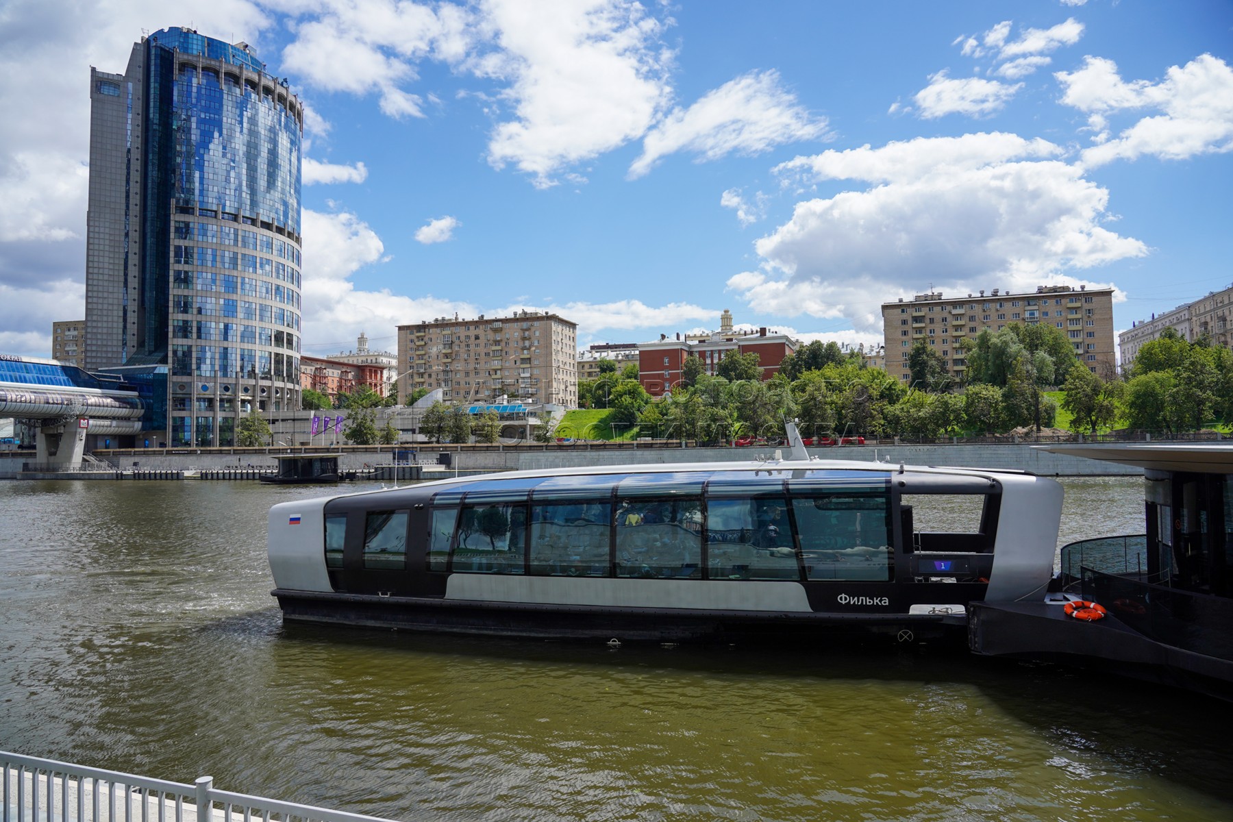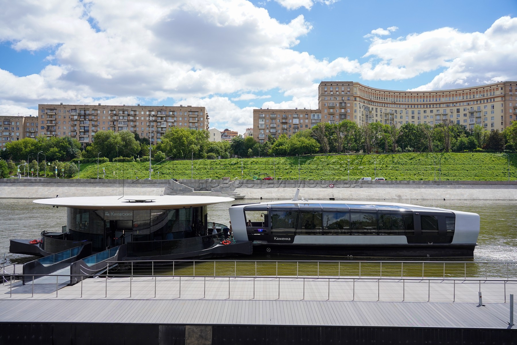 - Описание: Мероприятия в честь первой годовщины запуска в столице регулярного речного электротранспорта у плавучих причалов на Москве-реке.