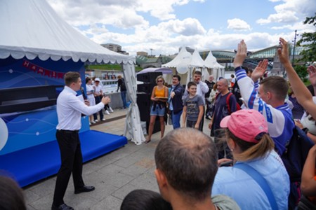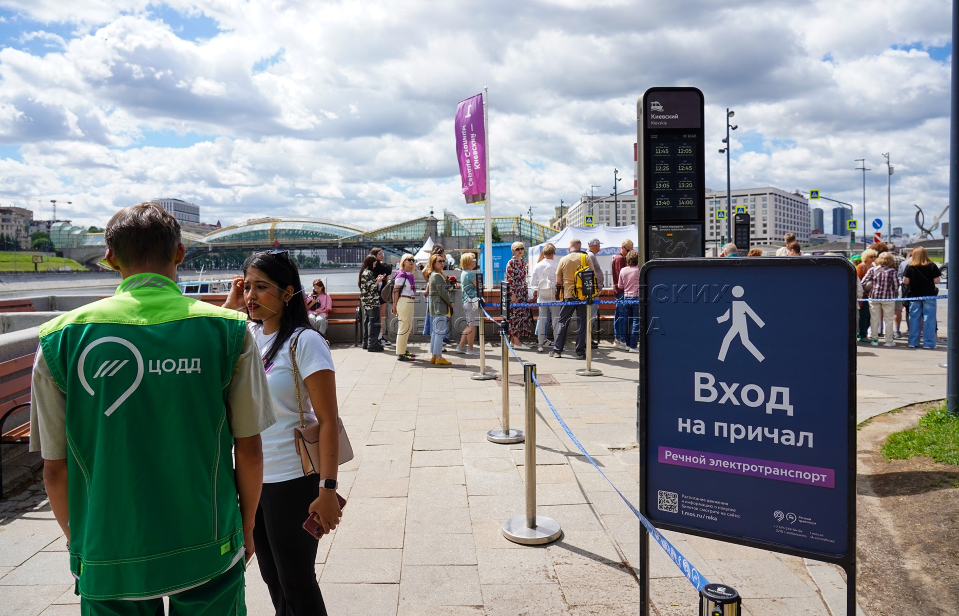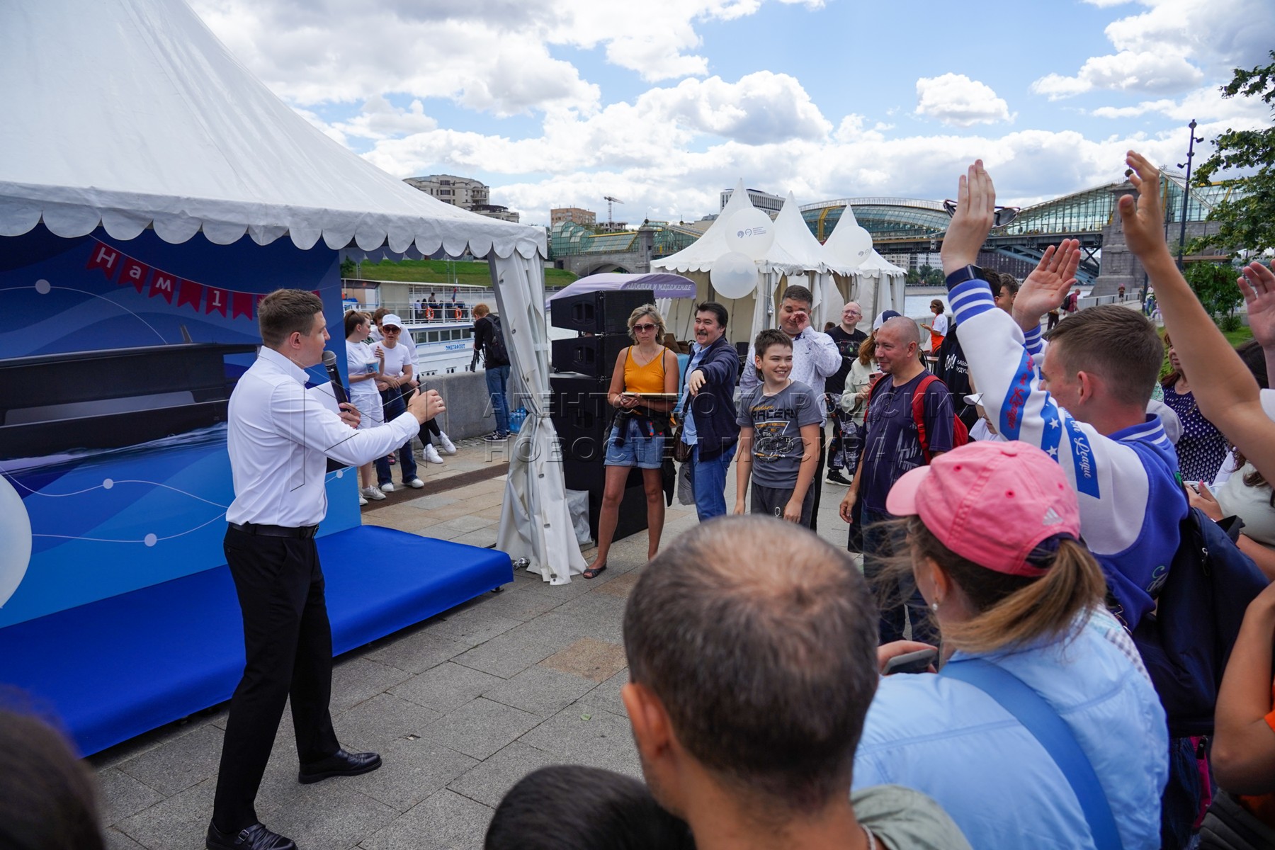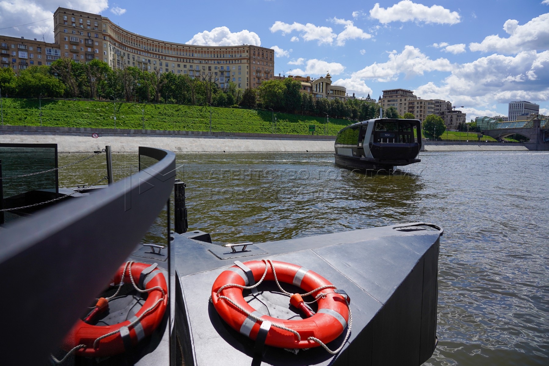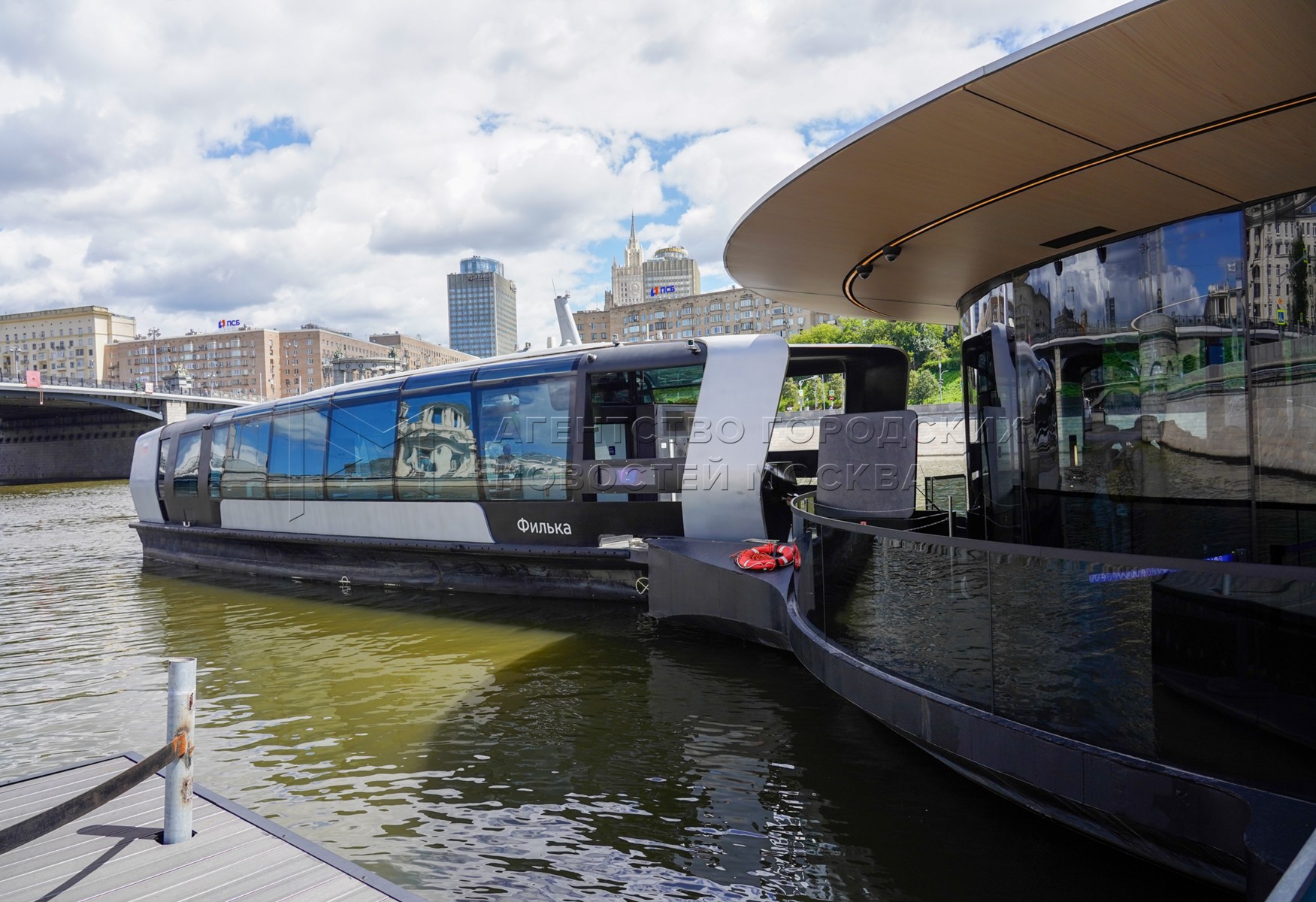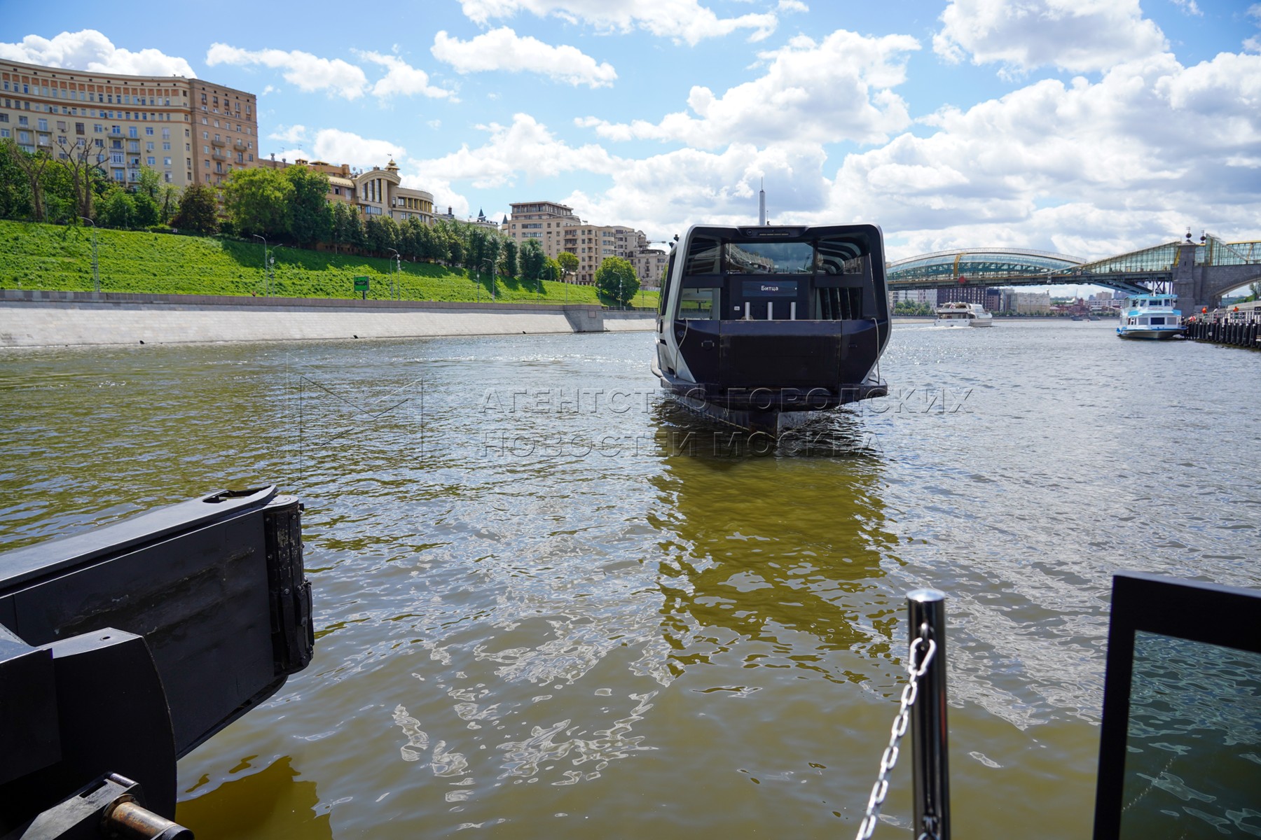 - Описание: Мероприятия в честь первой годовщины запуска в столице регулярного речного электротранспорта у плавучих причалов на Москве-реке.