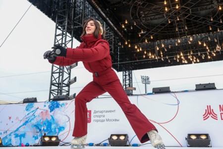Массовая тренировка с участием фигуристов на катке в «Лужниках»