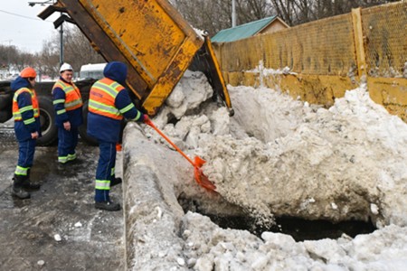 Работа снегосплавного пункта на западе Москвы