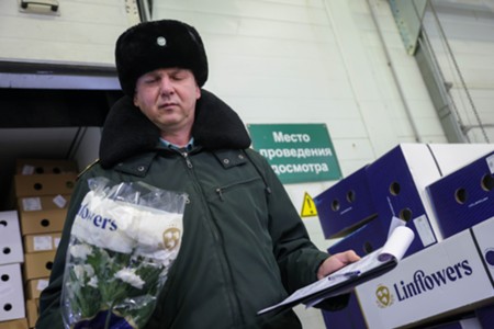 Оформление цветочной продукции на Ленинградском таможенном посту в преддверии 8 Марта