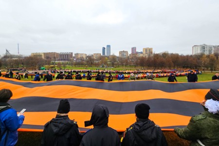 Георгиевскую ленту длиной 300 м развернули в парке у Ростокинского акведука