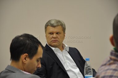 Кандидат в мэры Москвы Николай Левичев во время подготовки к теледебатам кандидатов на пост мэра Москвы на канале «Москва 24».
