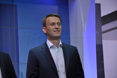 Кандидат в мэры Москвы Алексей Навальный во время подготовки к теледебатам кандидатов на пост мэра Москвы на канале «Москва 24».