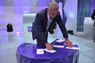 Кандидат в мэры Москвы Михаил Дегтярев во время подготовки к теледебатам кандидатов на пост мэра Москвы на канале «Москва 24».