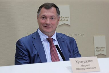 Заместитель мэра Москвы Марат Хуснуллин на пресс-конференции по случаю открытия пресс-центра Агентства городских новостей «Москва».