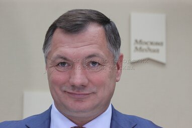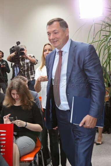Заместитель мэра Москвы Марат Хуснуллин перед пресс-конференцией по случаю открытия пресс-центра Агентства городских новостей «Москва».