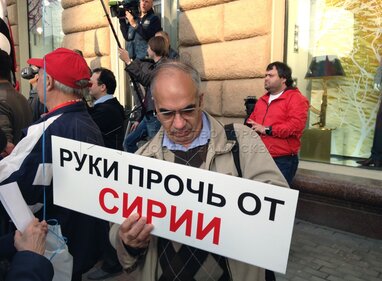 Митинг КПРФ «Против американо-натовской агрессии в отношении суверенного государства Сирии» на Новинском бульваре напротив здания посольства США.