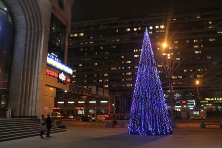 Установка Новогодней елки около станции метро «Тульская»