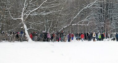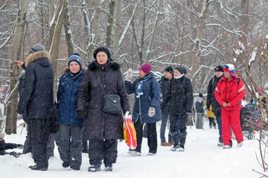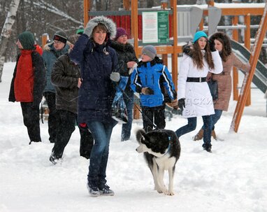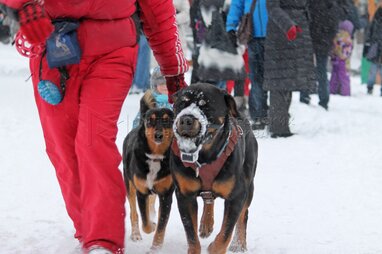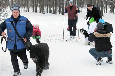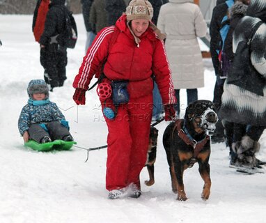 Традиционные праздничные катания на санках в собачьих упряжках, организованные клубом собаководов в парке «Сокольники».
