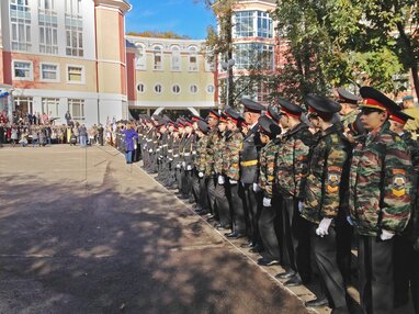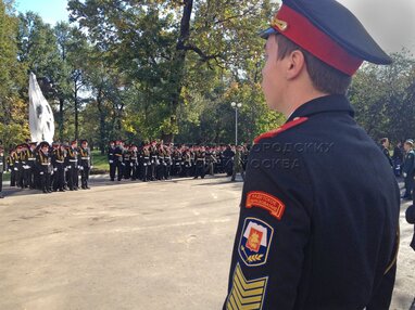 Торжественное построение кадетов в честь празднования 20-летия Первого Московского кадетского корпуса.