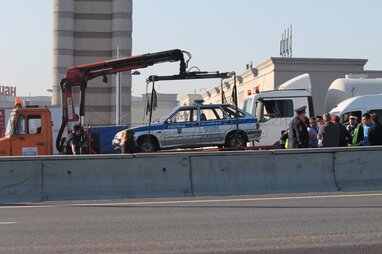 Место на 25 км МКАД, где полицейский погиб при попытке задержания подозреваемого.
