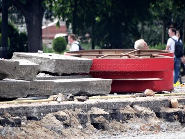 Реставрационные работы на Ленинской площади за главным входом в Парк Горького.