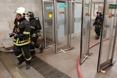 Ликвидация возгорания в подуличном переходе станции метро «Дмитровская».