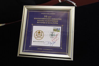 Мэр Москвы Сергей Собянин на церемонии гашения марки, посвященной Всероссийскому обществу охраны памятников истории и культуры