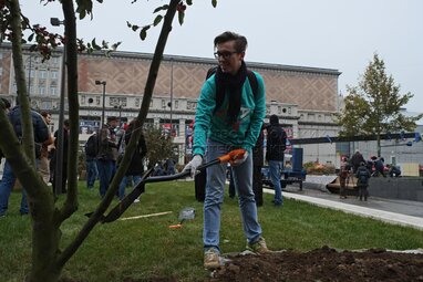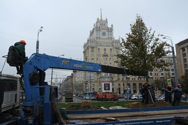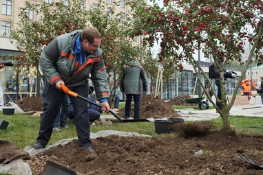 Высадка деревьев участниками проекта «Активный гражданин» в рамках программы «Моя улица» на Триумфальной площади