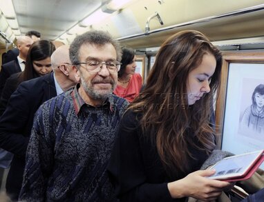 Потомок русского путешественника Александр Семенов-Тян-Шанский на запуске поезда Московского метрополитена «Акварель» с обновленной экспозицией, посвященного 170-летию Русского географического общества (РГО)