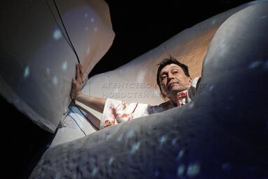 Репетиция фолк-мюзикла «Ночь перед Рождеством» в Московском государственном музыкальном театре фольклора «Русская песня» на Олимпийском проспекте.