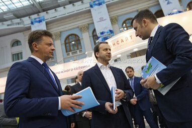 Министр транспорта РФ Максим Соколов (слева), вице-премьер РФ Аркадий Дворкович (в середине)