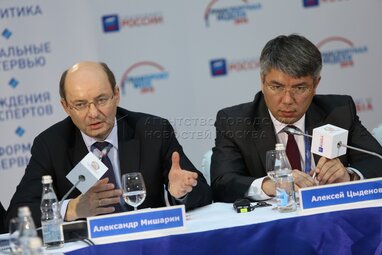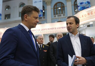 Министр транспорта РФ Максим Соколов (слева), вице-премьер РФ Аркадий Дворкович (справа)