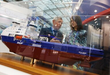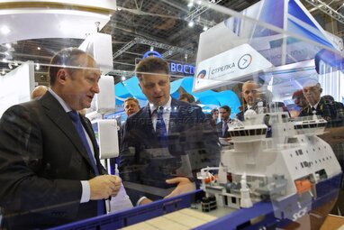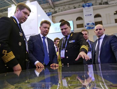 Министр транспорта РФ Максим Соколов (второй слева), заместитель руководителя Федерального агентства морского и речного транспорта Виктор Вовк (в середине)