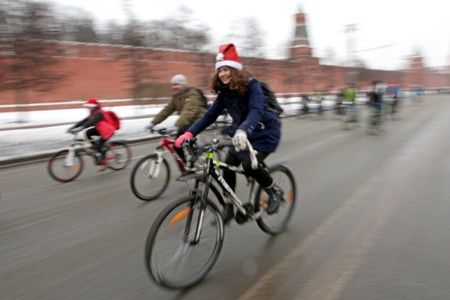 Первый зимний московский велопарад в центре города в поддержку развития велосипедной инфраструктуры.