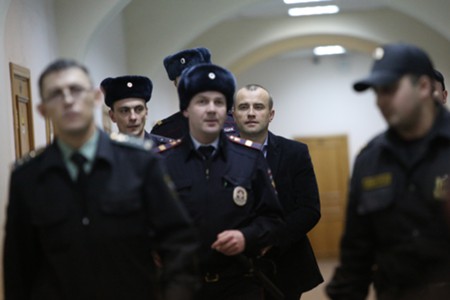Задержанный по делу о теракте в 2011 г. бывший директор ЗАО «Домодедово Эрпорт Авиэйшен Секьюрити» Андрей Данилов в Басманном суде.