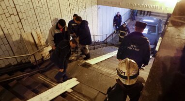 Работа оперативных служб по извлечению иномарки из подземного перехода у станции метро «Профсоюзная»