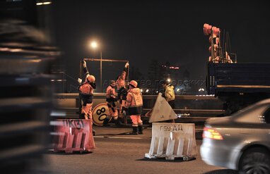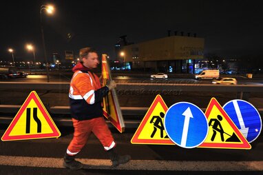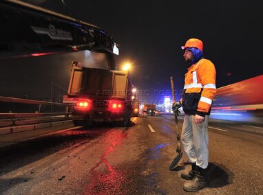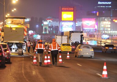 Замена асфальта на внешней стороне МКАД в районе Строгино.