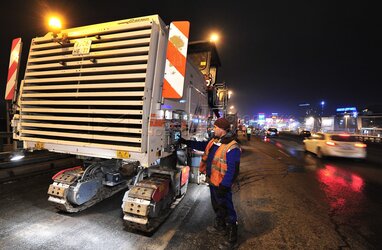 Замена асфальта на внешней стороне МКАД в районе Строгино