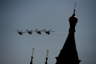 Автор: Киселев Сергей. Ударные вертолеты Ми-35 над Красной площадью во время воздушной части военного парада в честь 71-й годовщины Победы в Великой Отечественной войне