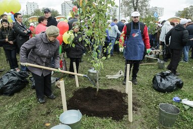 Субботник в Коломенском с Ю.Лужковым