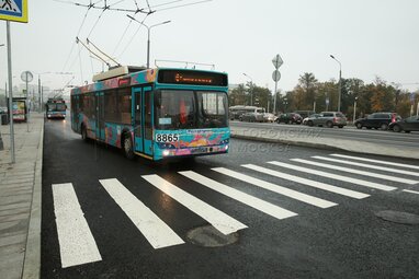 Новые выделенные полосы для общественного транспорта в центре Москвы на ул. Серафимовича. фото: Михаил Терещенко