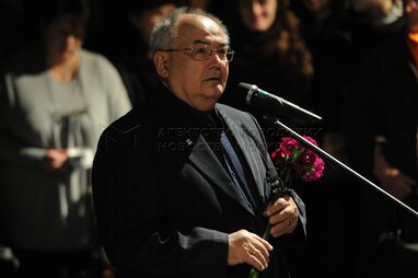 Актер Авангард Леонтьев на церемонии прощания с актрисой Людмилой Ивановой в здании театра «Современник»