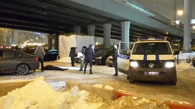 Работа сотрудников правоохранительных органов на месте убийства мужчины в Хорошевском районе столицы.