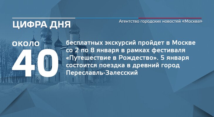 Цифра дня 24 декабря: около 40 бесплатных экскурсий пройдет в Москве со 2 по 8 января в рамках фестиваля «Путешествие в Рождество».