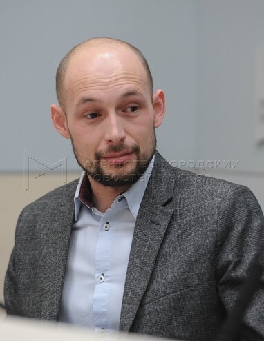 Научный сотрудник ГБУК г. Москвы «Мемориальный музей А.Скрябина», победитель городского конкурса профессионального мастерства «Московские мастера» в номинации «Лучший экскурсовод - 2016» Денис Хоров на пресс-конференции, посвященной Дню экскурсовода.