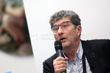 Фотограф Игорь Верещагин во время Public Talk в Московском Мультимедиа Арт Музее (МАММ).
