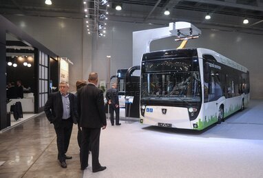Церемония передачи ГУП «Мосгортранс» электробуса от ПАО «КамАЗ» на площадке международной выставки «Комтранс-2017».