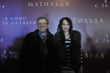Режиссер Юлий Гусман и его супруга Валида на премьере фильма режиссера Алексея Учителя «Матильда» в кинотеатре «Каро 11 Октябрь»