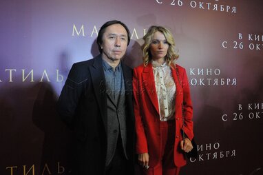 Актер Марат Башаров и его жена Елизавета на премьере фильма режиссера Алексея Учителя «Матильда» в кинотеатре «Каро 11 Октябрь»