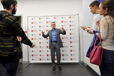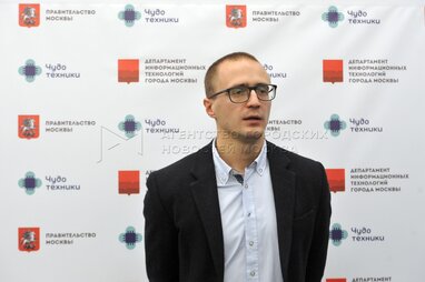 Руководитель департамента информационных технологий города Москвы Артем Ермолаев во время открытия в Яковоапостольском пер. салона городского цифрового сервиса «Чудо техники» по ремонту аппаратуры