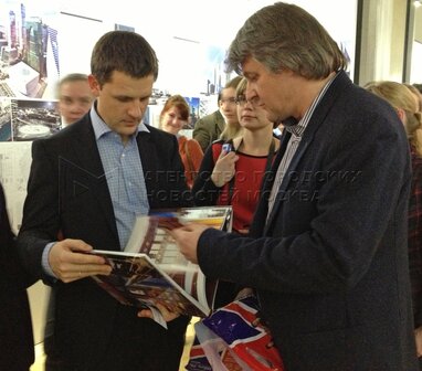 Главный архитектор Москвы Сергей Кузнецов (слева) выставке проектов «Открытый город».