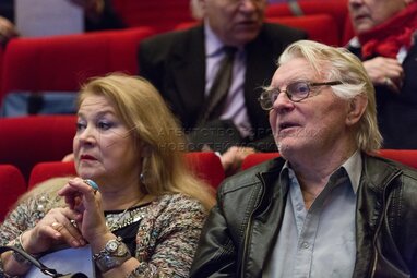 Актеры Людмила Мальцева и Юрий Назаров (справа) на Х Съезде Союза кинематографистов России в Доме кино.