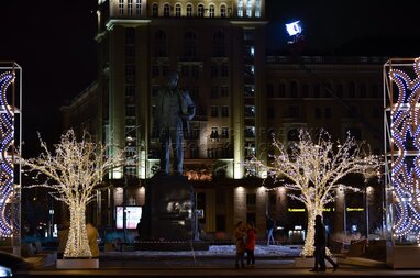 Вечерняя подсветка на улицах в центре Москвы. Автор фото: Кардашов Антон