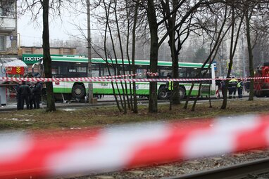 Последствия ДТП с участием автобуса на ул. Сходненская, д. 37.