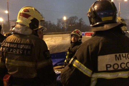 На месте происшествия работают сотрудники экстренных служб, прибыли пожарные автомобили, машины «скорой помощи».