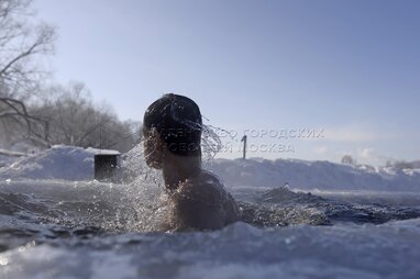 Клуб закаливания и зимнего плавания «Моржи столицы» в Москве-реке в районе Щукино.